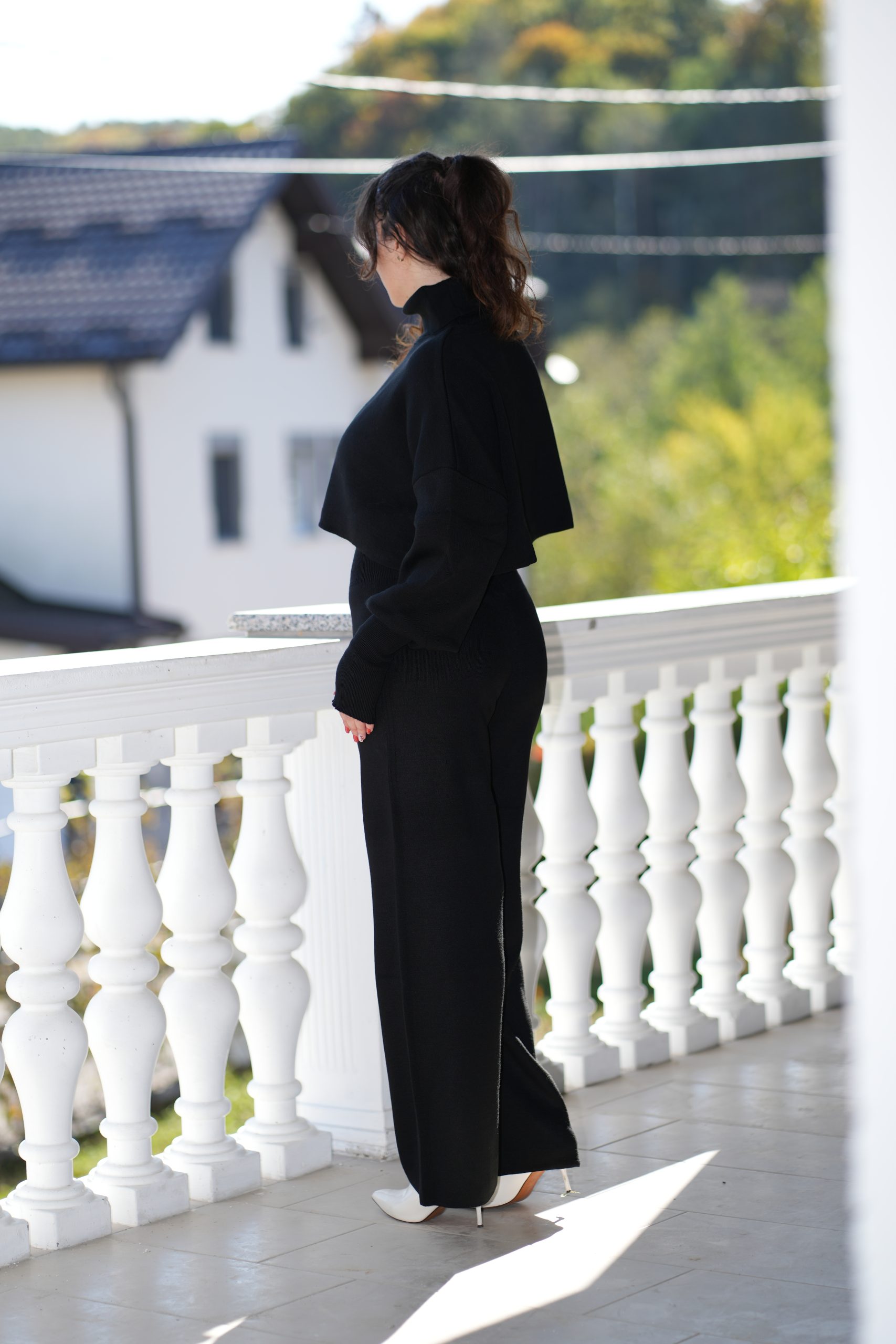 Za hladne dane kada želite izgledati elegantno, a osjećati se maksimalno udobno – ovaj zimski komplet od konca je savršen izbor. Sastoji se od klasične crne rolke dugih rukava i širih, opuštenih hlača, čineći idealan spoj praktičnosti, topline i stila.
