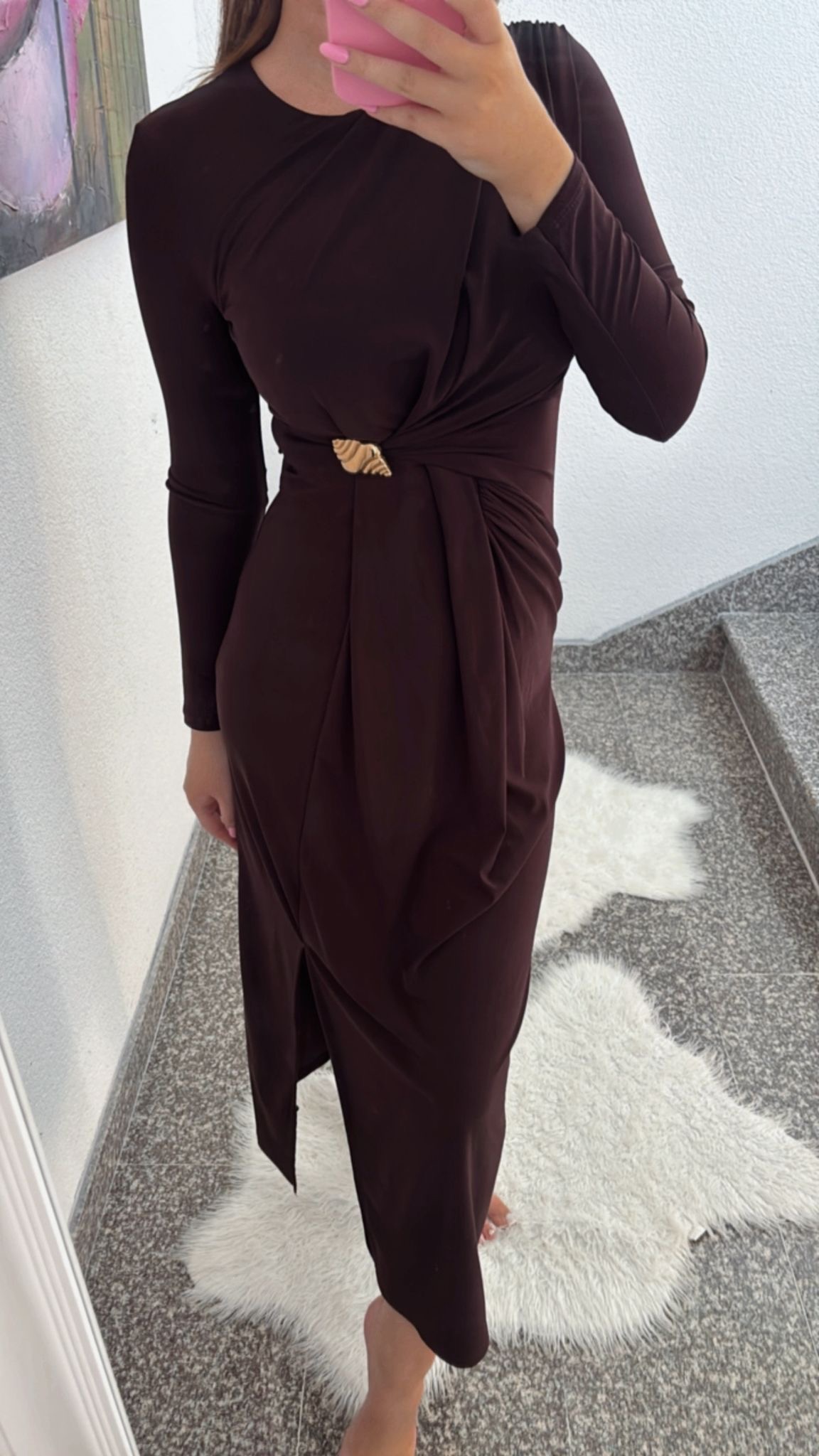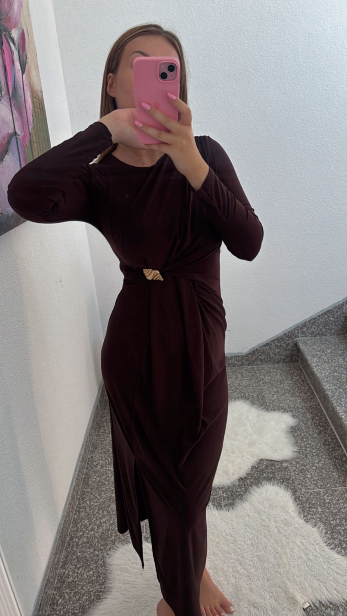 Midi haljina sa zlatnim detaljima ✨👗 Elegantna, ženstvena i savršena za svečane prilike 💃💫 Zablistaj gdje god da se pojaviš! 🌟