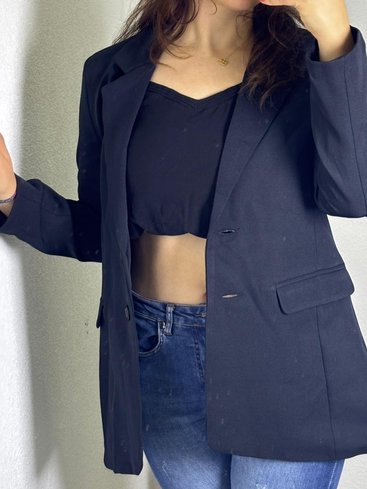 Moderan ženski sako sa kaišem u crnoj boji — elegantan i svestran komad koji se lako kombinuje uz farmerke, suknje ili poslovne pantalone. Idealno rješenje za svaki dan ili posebne prilike.
